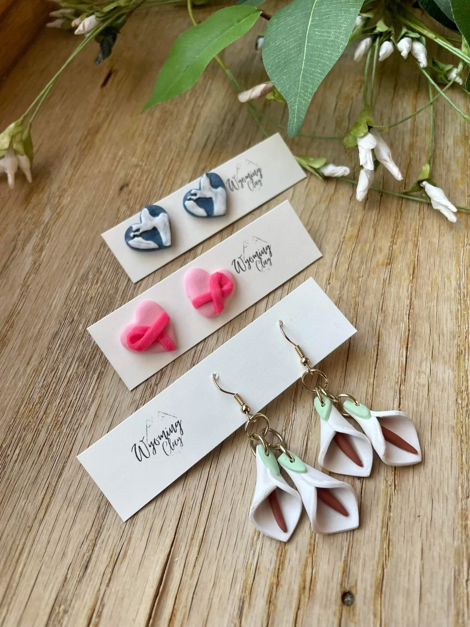 Miracles for Stefani is collaborating with Wyoming Clay to craft three distinct, handmade earring sets, each representing a significant aspect of this project: CTA/Bangladesh, Breast Cancer Awareness, and, of course, Stefani herself as Calla Lilies were one of her favorite flowers.